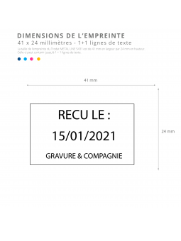 0 Aperçu rapide TRODAT METAL LINE 5431 | Empreinte 1 + 1 lignes 41 x 24 mm... Du Prix 55,12 € Tampon dateur TRODAT METAL LINE 5431 - 1 + 1 lignes Voir le produit Rouge Noir Bleu Vert Violet 0 Aperçu rapide Cassette d'encrage TRODAT 6/50 | 41 x 24 mm mm | Encre TRODAT... Du Prix 4,94 € CASSETTE D'ENCRAGE 6/50A - TRODAT METAL LINE 5200 / 5430 Voir le produit Empreinte TRODAT METAL LINE... 10,90 € Ajouter au panier Plaque de texte en caoutchouc pour tampon encreur TRODAT METAL LINE 5431